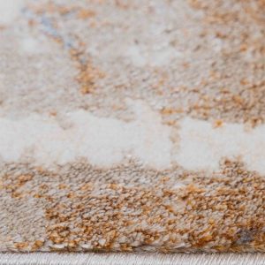 Su diseño abstracto en tonos neutros, bronce y gris aporta un toque artístico y elegante, perfecto para complementar cualquier estilo de decoración. Ya sea que prefieras un estilo minimalista, moderno o clásico, este tapete se integrará a la perfección, realzando la belleza de tus muebles y accesorios.