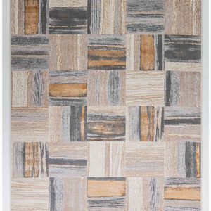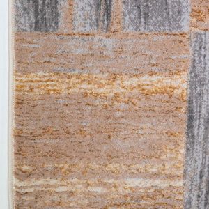 Transforma tu hogar con este tapete de diseño moderno. Sus bloques en tonos beige, café y gris oscuro le darán un toque único a tu espacio. ¡Ideal para renovar tu sala o recámara!