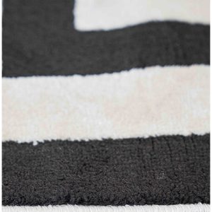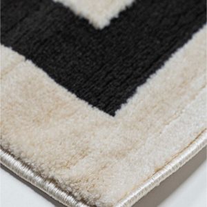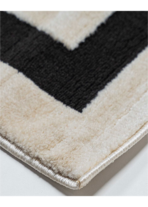 Transforma tu espacio con este tapete de diseño geométrico. Su estilo moderno y contraste de colores, beige y gris oscuro, brindan un toque sofisticado y actual. ¡Ideal para renovar tu sala o recámara!