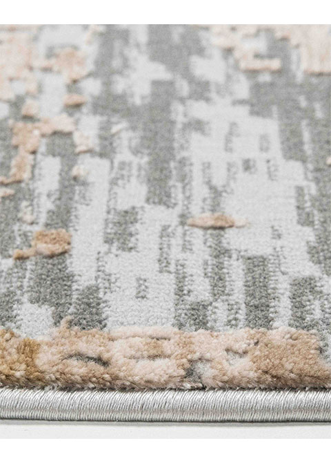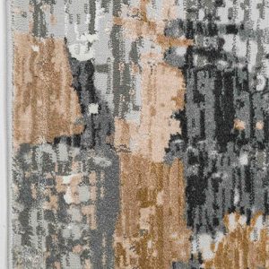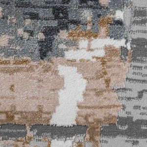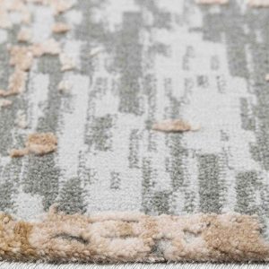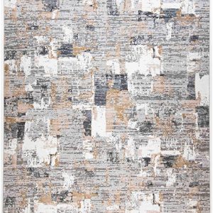 Dale un toque artístico y contemporáneo a tu hogar con este hermoso tapete. Su diseño abstracto en tonos grises y dorados transformará tu espacio en un ambiente moderno y acogedor. ¡Perfecto para tu sala o recámara!