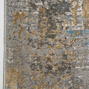 Transforma tu espacio con este tapete de diseño abstracto en tonos grises y dorados. Su textura suave y fácil mantenimiento lo hacen ideal para cualquier habitación.