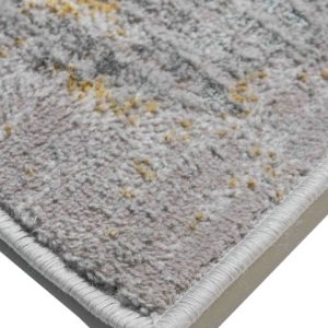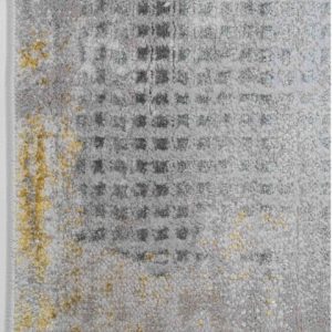 Transforma tu espacio con este tapete de diseño moderno. Su textura suave y diseño abstracto en tonos grises con toques dorados aportan un toque de elegancia a cualquier ambiente.