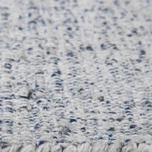 Transforma tu espacio con este elegante tapete. Su diseño tejido en tonos grises y azules añade un toque de sofisticación y calidez a cualquier habitación. Ideal para complementar tu sala, comedor o recámara.