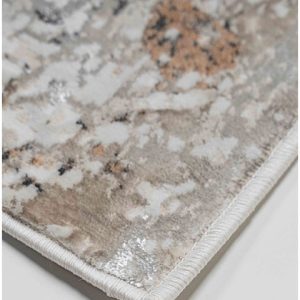 Transforma tu espacio con este elegante tapete. Su diseño abstracto en tonos neutros y grises añade un toque moderno y sofisticado a cualquier habitación. Ideal para tu sala, comedor o recámara.