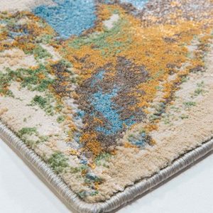 Su estilo abstracto en tonos neutros, azules y dorados aportará un toque artístico y elegante a tu hogar.