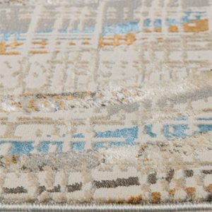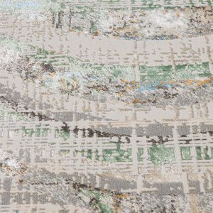 Imagina cómo este tapete puede transformar tu hogar. Con su diseño abstracto en tonos neutros, azules y verdes, aportará un toque moderno y sofisticado a tu sala, comedor o recámara principal. Este tapete no solo decora, sino que crea una atmósfera cálida y acogedora donde te encantará pasar tiempo.