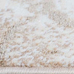 Imagina cómo este tapete puede transformar tu sala, comedor o recámara en un espacio lleno de estilo y confort. Su diseño abstracto, con líneas en tonos neutros y café, añade una dosis de sofisticación a cualquier ambiente.