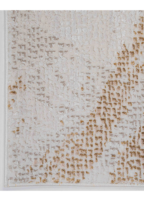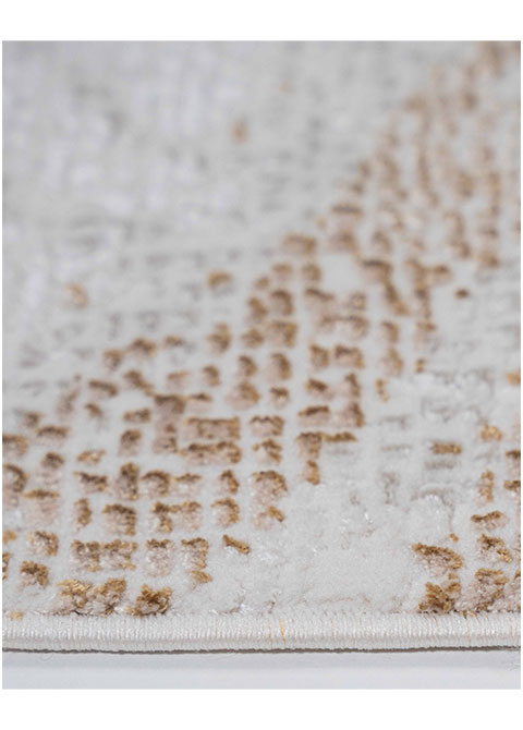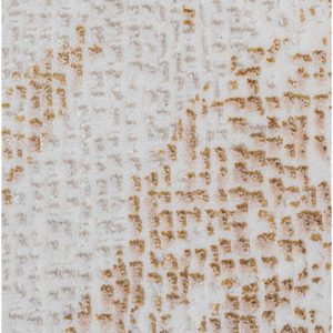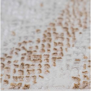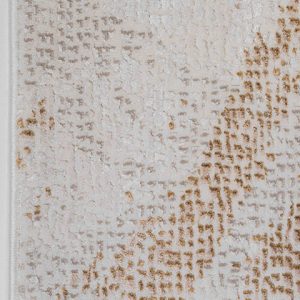 Transforma tu hogar con este hermoso tapete de diseño abstracto. Su estilo moderno y colores neutros con toques dorados aportarán un toque de elegancia y calidez a tu espacio. Perfecto para tu sala, comedor o recámara.