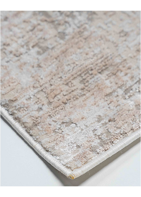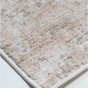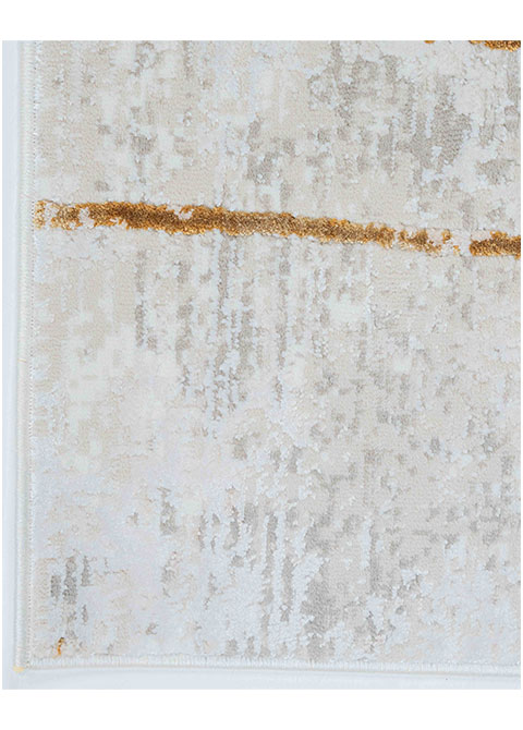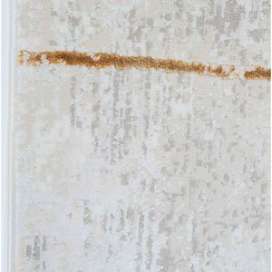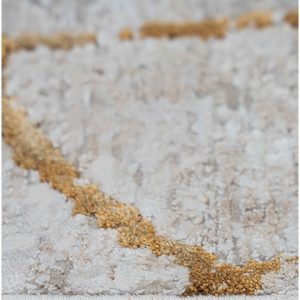 El tapete moderno de la colección Fiora, fabricado a máquina en Turquía, es una pieza esencial para diseñadores y arquitectos que buscan un toque distintivo en sus proyectos. Su diseño abstracto en dorado sobre un fondo neutro lo convierte en una opción versátil para una variedad de espacios interiores.