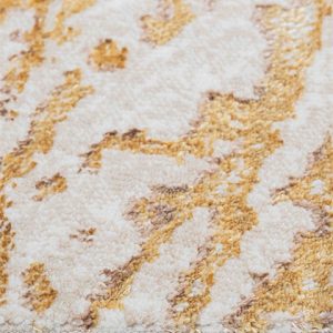 Con su diseño de vetas en tonos dorados, este tapete añade un toque de elegancia a cualquier habitación. Su textura suave te brindará confort a cada paso, convirtiendo tu hogar en un refugio acogedor.
