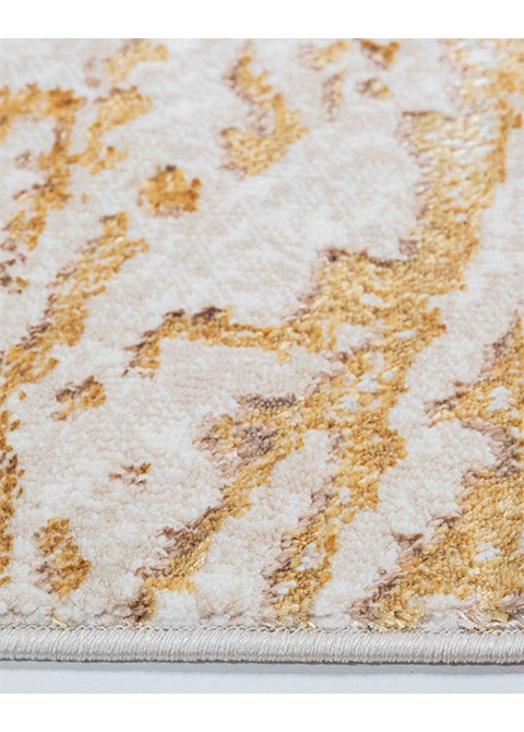 Transforma tu espacio con este elegante tapete de diseño moderno. Su textura suave y sus detalles en dorado añadirán calidez a tu hogar. ¡Perfecto para tu sala o recámara!