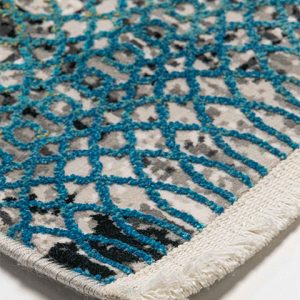 ¿Buscas renovar tu hogar con un toque de modernidad y sofisticación? Este tapete es la solución perfecta. Su diseño geométrico en tonos neutros y azules crea un ambiente visualmente atractivo y acogedor, invitando a la relajación y al confort.