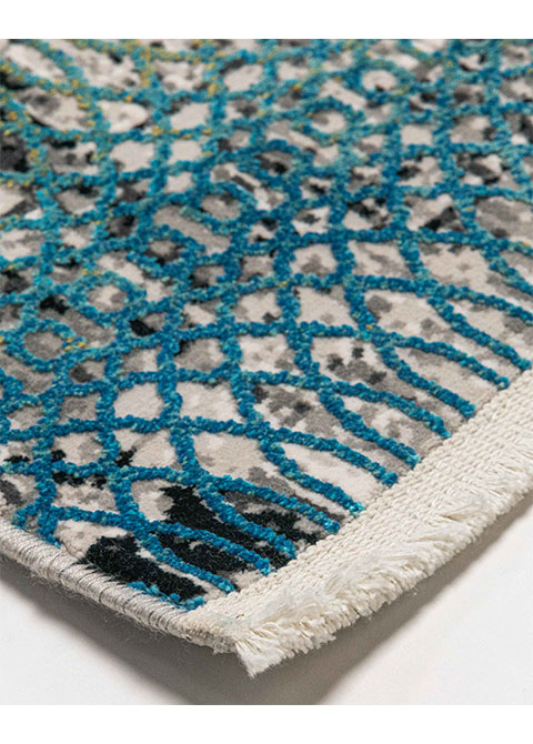 Dale un toque artístico y contemporáneo a tu hogar con este increíble tapete. Su diseño geométrico en tonos neutros y azules transformará cualquier espacio en un lugar moderno y acogedor. Ideal para tu sala o recámara.