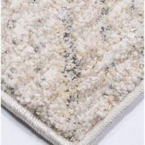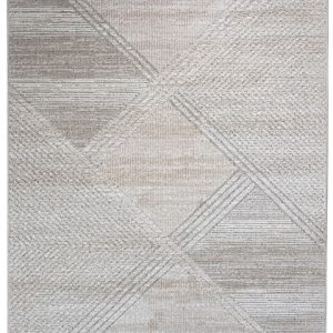 Transforma tu espacio con este tapete de diseño geométrico. Su paleta de colores neutros y grises aporta un toque de modernidad y sofisticación. Ideal para tu sala, comedor o recámara principal.