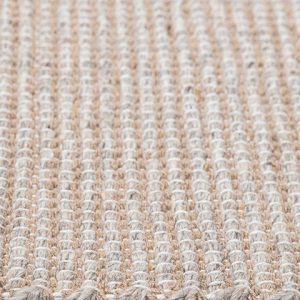 Este tapete de color neutro ofrece una textura sutil y un diseño lineal fino, perfecto para complementar cualquier espacio. Ideal para uso en interiores, este tapete añade un toque de sencillez y calidez a tus proyectos de diseño.
